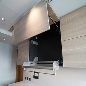 The pull-down shelf is suitable to store a large number of cooking utensils by lowering it to an accessible height.