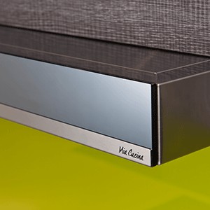 The graceful profiles of the Mia Cucina rangehood complete the elegant cabinet façade.