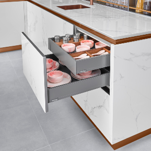 為不同大小的抽屜度身訂造分隔配件,隨時按個人喜好選擇收納方式,使廚具物品各得其所,保持櫃內整齊一致。