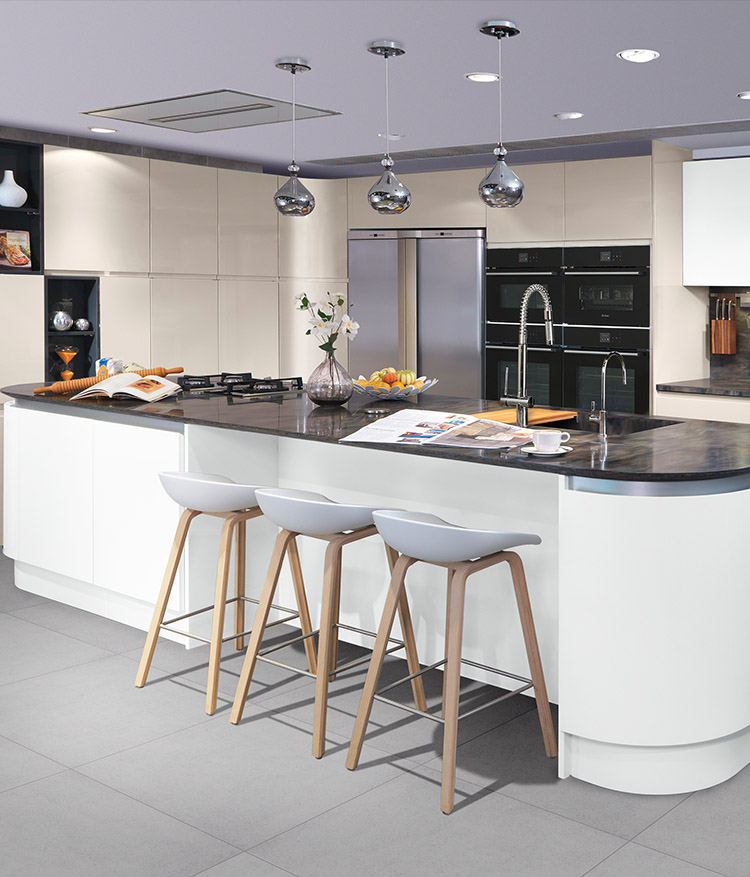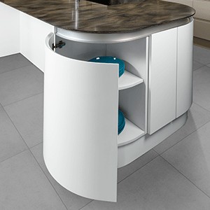 島形工作枱的弧角與廚櫃的弧形設計一脈相承,展現柔和優美的風格。